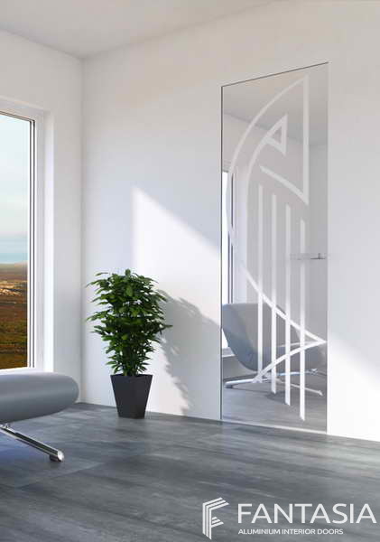 Цена указана за: полотно с зеркалом "серебро" с двух сторон + художественный пескоструй (каркас алюминий) для скрытой коробки.